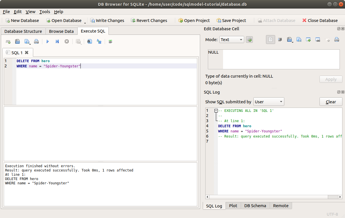 Now let's delete some data using SQLModel.